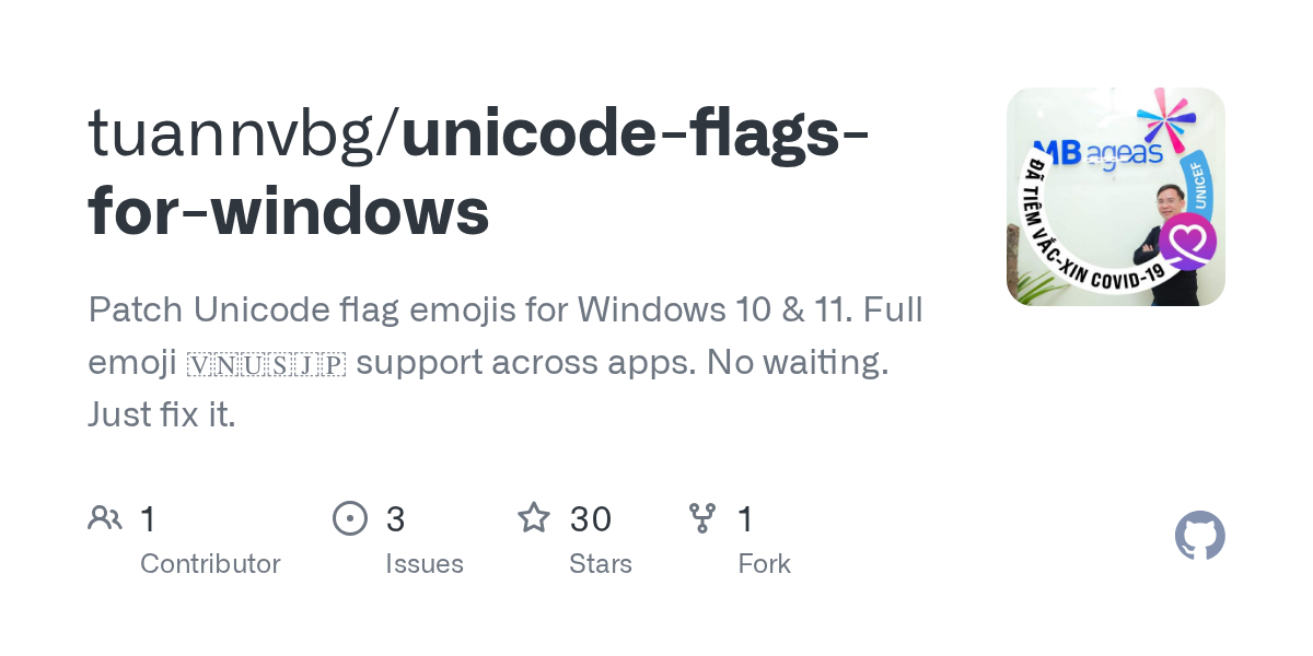 GitHub-projektet “unicode-flags-for-windows” tilbyder en løsning, der tilføjer understøttelse af Unicode-flag-emojis i Windows 10 og 11. Formålet er at få flag som 🇻🇳, 🇺🇸 og 🇯🇵 vist korrekt på tværs af apps. Projektet præsenteres som en hurtig måde at rette manglende emoji-understøttelse i Windows.