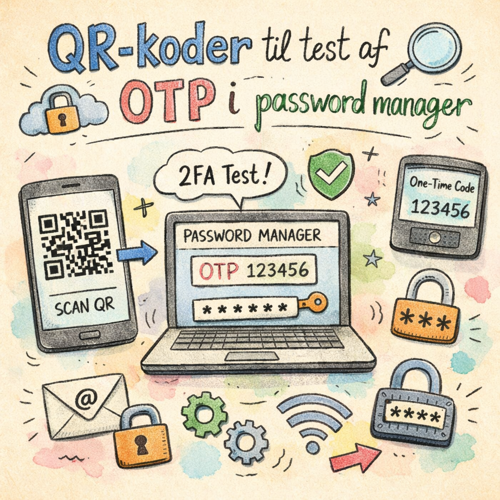Perfekt til at teste min nye Password Manager - en håndfuld QR-koder til 2-factor (OTP/TOTP).